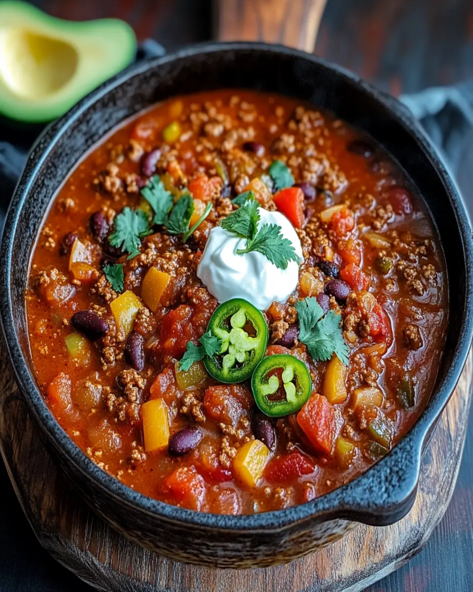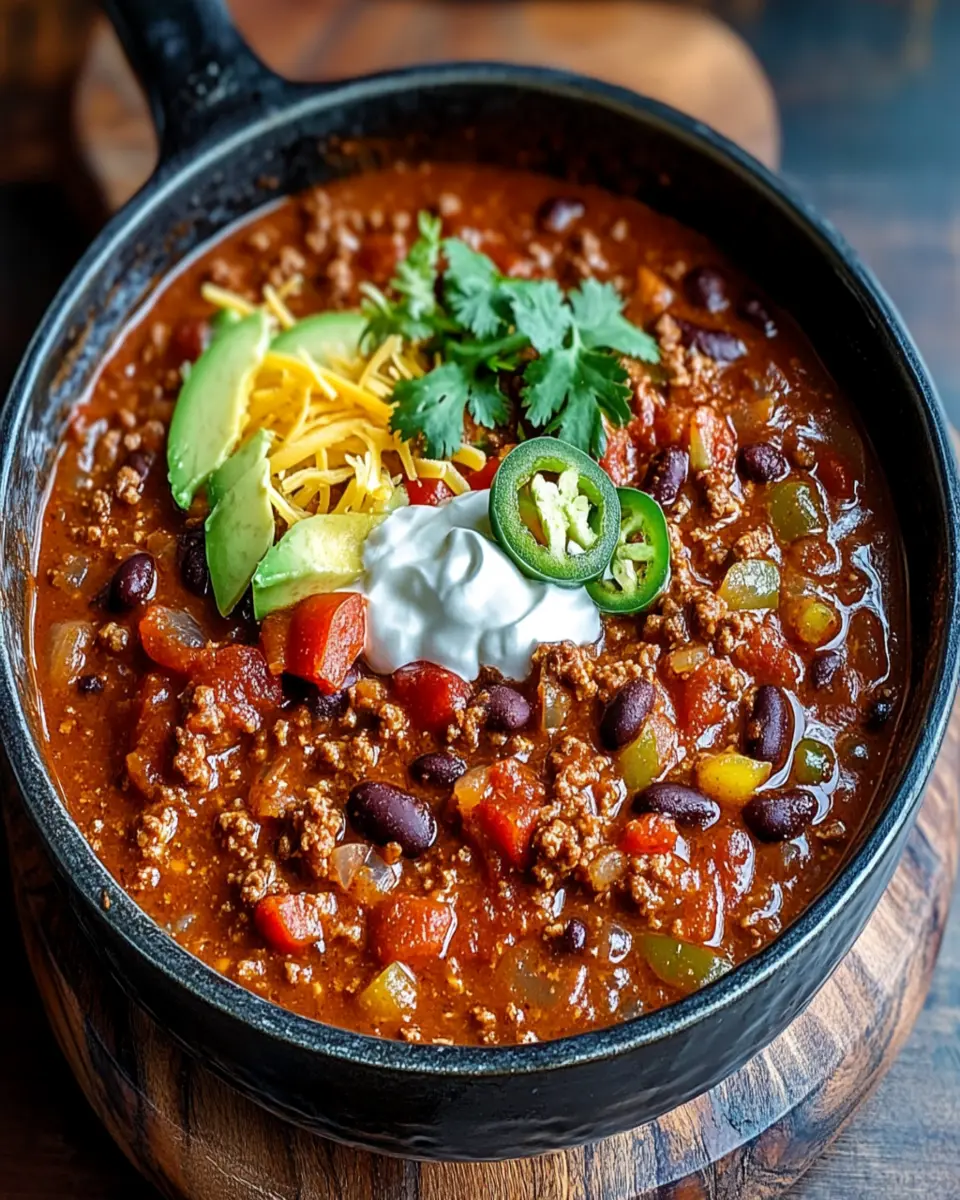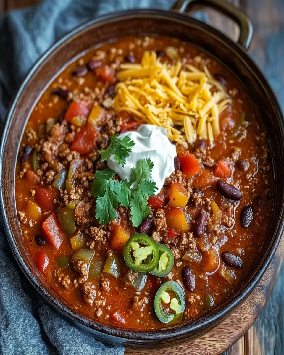 Rich and hearty Dutch Oven Chili, perfect for a cozy meal.